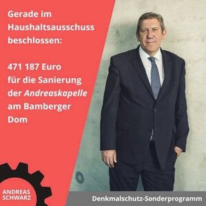 Ein weiteres historisches Kleinod der Bamberger Denkmal-Landschaft wird mithilfe von Fördermitteln des Bundes wieder instand gesetzt. Dies teilt der Bamberg-Forchheimer Bundestagsabgeordnete Andreas Schwarz soeben aus der Bereinigungssitzung des Deutschen Bundestages mit.