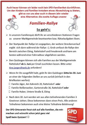 Der SPD-Ortsverein Rattelsdorf freut sich wieder auf alle Familien, die mitmachen und wünscht viel Spaß beim Quizzen ;-).