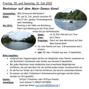 Der SPD-Ortsverein Rattelsdorf hat auch in diesem Jahr wieder ein tolles Angebot für Familien im Sommer-Ferienprogramm. Diesmal geht es aufs Wasser... :-)